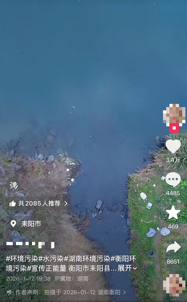 網友發視頻稱有黑色的污水排放至湖南耒水
